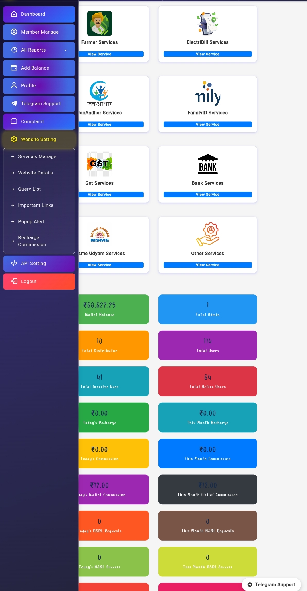 All control by ADMIN AND API